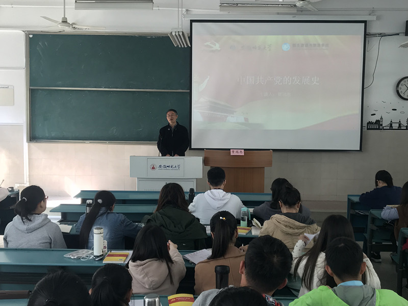 贾冠忠从历史是什么的问题切入,从中国共产党的酝酿筹备阶段、中国共产党的成立和中国共产党的成长三方面介绍了党的发展历程。穿插着陈望道先生翻译《共产党宣言》的故事,从党的一大、二大、三大的召开给我们展现出党的逐步发展过程。最后,贾冠忠鼓励我们珍惜时光,努力学习,积极向党组织靠拢,争取早日入党,实现自己美好的梦想。