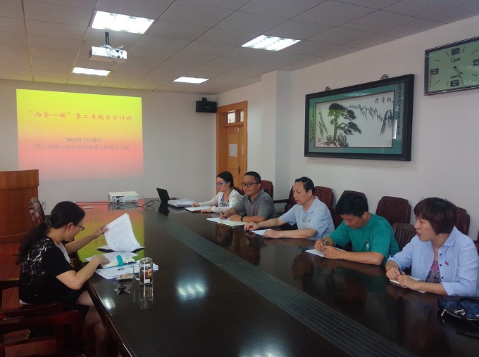 本网讯(国旅公司 汪青)按照《国土资源与旅游公司“两学一做”学习教育具体行动方案》的有关要求,深入推进学习教育,根据地理土地教工支部“两学一做”学习教育安排,2016年7月28日下午,地理土地教工支部组织召开“两学一做”学习教育第二专题学习会。会议由支部书记方凤满主持。