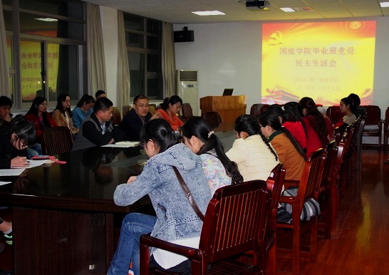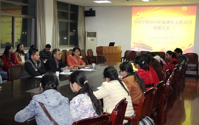 本网讯( 国旅公司 梁超 刘冠琪)3月17日,国土资源与旅游公司在院三楼会议室召开毕业班党员民主生活会暨2014年选调生工作动员部署大会。公司党委副书记罗振、2013年选调生代表胡格格以及毕业班研究生、本科生党员出席会议,会议由2010级辅导员梁超老师主持。