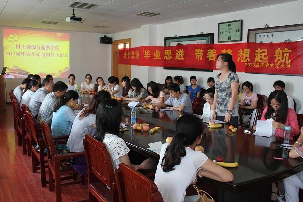 毕业生党员组织生活会严格履行了组织有关于发展党员的规定,加强了毕业生党员党性意识,促进他们在毕业后对党的事业的责任感和紧迫感,并以实际行动来履行自己的誓言,牢固树立为党和人民的事业、为实现伟大中国梦而努力奋斗的意识。(国旅公司)