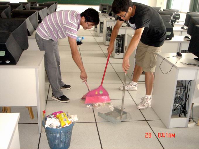 上午8点,50名毕业生党员来到该院实验楼,由院管理员老师分配任务,义务打扫一楼标本室、多媒体教室,二楼机房和四楼机房等昔日他们上课的地方,他们不怕脏,不怕累,清理着室内和走廊的卫生死角。经过一上午的辛勤劳动,实验楼比往常变得更加整洁明亮。