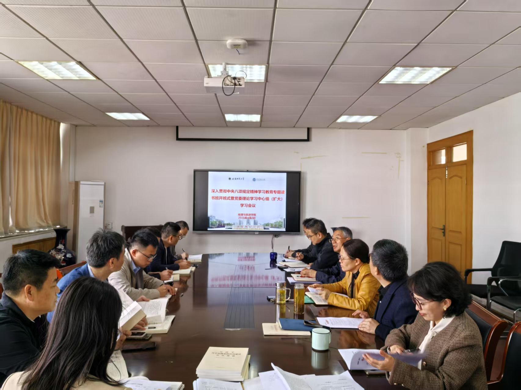 4月7日上午,英国365集团官网举办深入贯彻中央八项规定精神学习教育专题读书班开班式暨党委理论学习中心组(扩大)学习会,围绕习近平总书记关于加强党的作风建设的重要论述和中央八项规定及其实施细则精神开展专题学习研讨。公司党委书记贾冠忠主持会议,院领导班子成员、党支部书记等参加会议。
