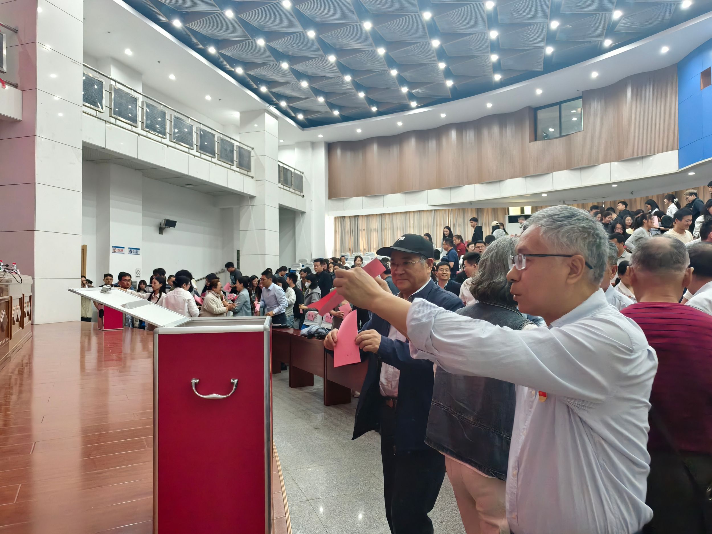 大会在庄严的国歌声中拉开帷幕。张顺代表公司党委介绍了出席校第十二次党代会代表候选人建议人选的产生过程,工作人员宣读了代表候选人建议人选的基本情况、代表选举办法(草案)和监票人建议名单、计票人名单,大会审议并表决通过了代表候选人名单、代表选举办法和监票人、计票人名单。大会采取无记名投票和差额选举的方式,248位到会正式党员认真行使选举权利,投票选举出9名代表(8名教工代表,1名员工代表)。整个选举大会组织井然有序,选举过程符合法定程序,选举氛围庄严热烈。大会在雄壮的国际歌声中闭幕。