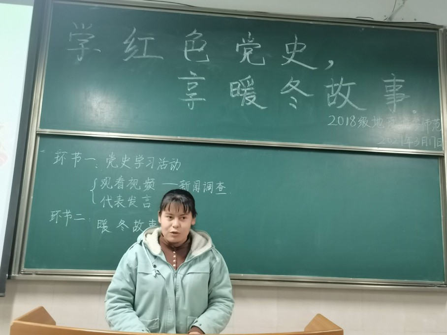 为庆祝建党100周年,巩固寒假生活。2018级城乡规划和地科师范班开展 “学党史,忆党章”暨“逐梦暖冬,筑梦青春——我的暖冬故事分享会”团日活动。郭鑫龙和李磊同学,从路的发展切入,讲述家乡的变迁。李磊表示,过去从家去镇上都得坐船,如今去镇上可以选择多种交通工具,十分方便。王文强向同学们分享了自己在家阅读所得,积极地向大家传授学习经验;许婉清则从分享了自己在家上网课的所得所感。