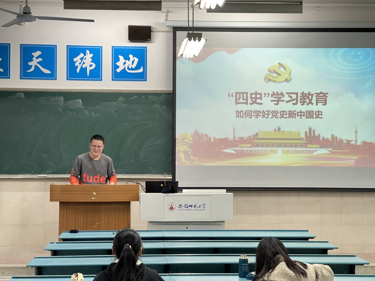 本网讯(吴阳磊 彭媛媛)为贯彻落实习近平总书记在党史学习教育动员大会上的重要讲话精神,引领广大同学学史明理、学史增信、学史崇德、学史力行。2021年3月14日晚,英国365集团官网2020级地理科学拔尖班在教室举行了“‘四史’学习教育 如何学好党史新中国史”主题班会,会议由团支书吴阳磊主持,2020级地理科学(拔尖班)全体同学参加。