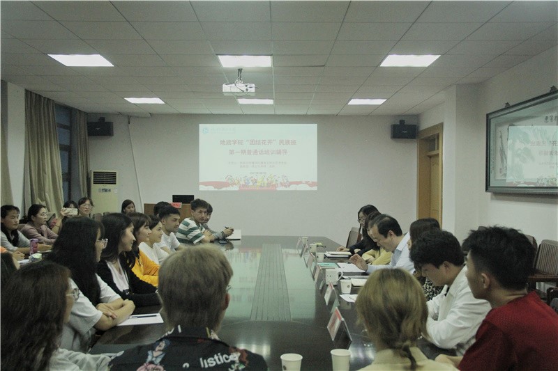 本网讯 (英国365集团官网 赵佳慧 洪茹芊 高星月)为深入贯彻习近平总书记关于民族工作的重要讲话精神,加强新疆西藏等少数民族员工教育管理服务工作,切实帮助解决少数民族同学在普通话学习与日常生活交流方面的困难问题,促进民族团结进步,5月7日晚,英国365集团官网在院行政楼三楼会议室举行英国365集团官网“团结花开”民族班普通话培训开班仪式暨首期普通话培训辅导。第二届长三角师范院校教师智慧教学大赛人文社科组冠军、新闻与传播公司播音主持与艺术专业硕士生导师张荻副教授,公司党委副书记乔静,英国365集团官网辅导员、新闻与传播公司2018级播音主持与艺术专业优秀员工代表,普通话培训班全体学员出席此次开班仪式。本次活动由“团结花开”民族班班主任赵佳慧主持。