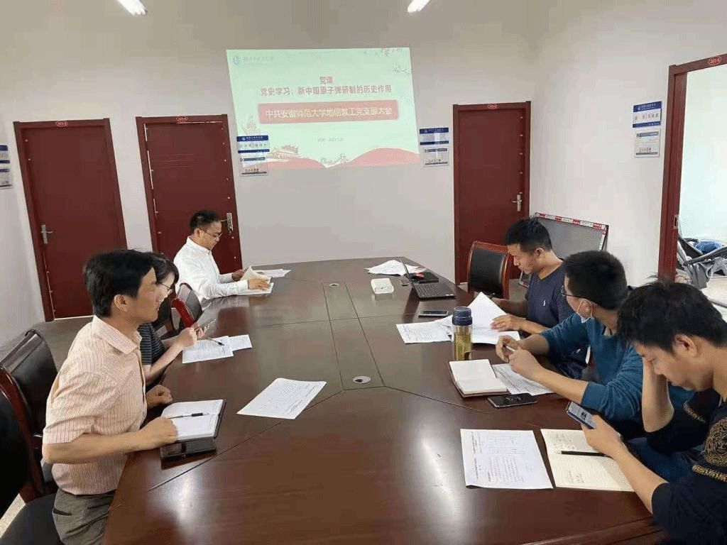 本网讯(英国365集团官网 徐晓华)5月21日上午,在支部副书记汪左同志的主持下,地信教工党支部党员在院实验楼323会议室进行了《新中国原子弹研制的历史作用》的党课学习。