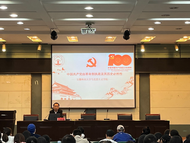 本网讯(英国365集团官网 王海凤)2021年10月23日晚上,英国365集团官网分党校邀请马克思主义公司博士王瀛培老师以《中国共产党从革命到执政及其历史必然性》为主题为公司校第11期党员培训班和校第62期入党积极分子培训班全体学员讲授党课,全体学员在院实验楼101报告厅聆听了党课。