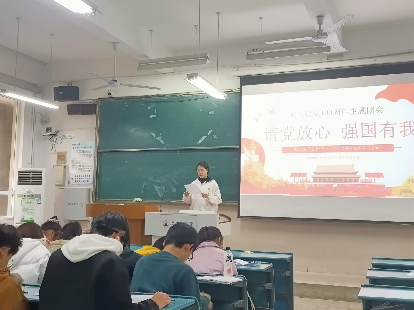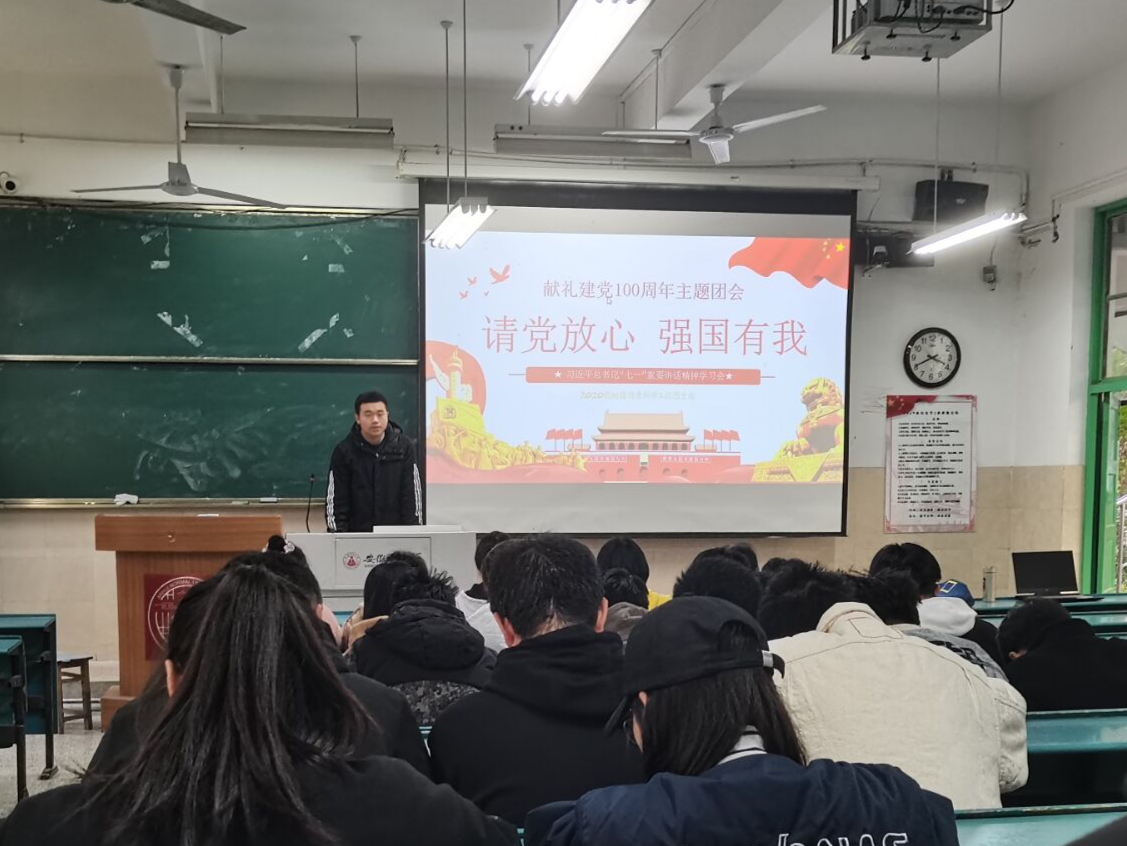 大会主要分为五项议程,第一项,团支部书记汪子韩同学汇报团支部今年开展的党史学习教育情况;第二项,全体同学起立唱团歌;第三项,团支部书记汪子韩同学带领全体同学学习习近平总书记“七一”重要讲话精神,第四项,素拓委员王蕊同学和第五团小组组长程灵箫同学结合学习和生活实际以及自身日常行为表现的情况,进行交流发言,各团小组组长汇报对团支部委员会工作的意见和建议;最后,我们全体起立,一起宣读入团誓词,铿锵有力的宣读声的背后,是我们对团组织的信任和敬仰。