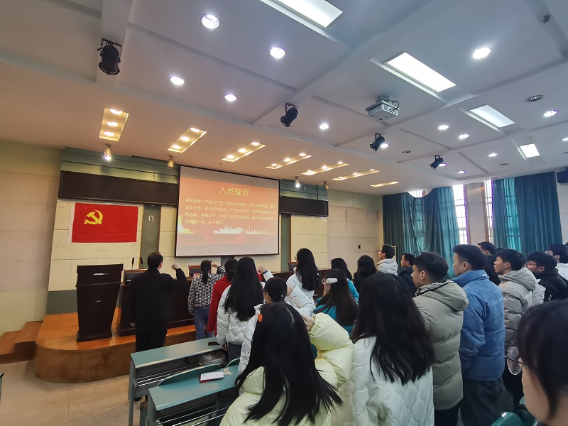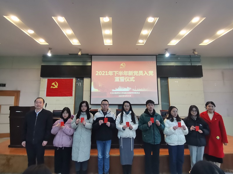 12月31日下午,公司党委在院实验楼101报告厅举行2021年新党员入党宣誓仪式。公司党委副书记乔静、各员工支部书记、2021下半年新发展入党的预备党员参加仪式,面对党旗庄严宣誓。宣誓仪式由党校班主任王美主持。