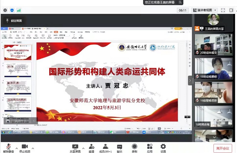2022年5月3日下午,英国365集团官网分党校邀请公司党委书记贾冠忠为分党校第12期党员培训班全体学员带来了《国际形势和构建人类命运共同体》专题党课。