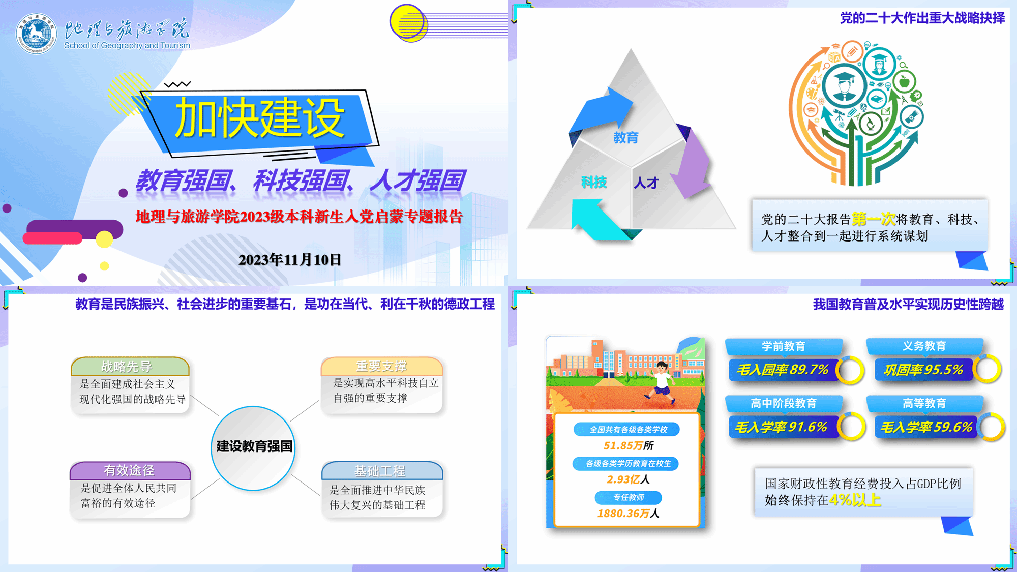 11月10日,英国365集团官网组织“加快建设教育强国、科技强国、人才强国”专题讲座,深入贯彻习近平总书记在中共中央政治局第五次集体学习时的重要讲话精神和党的二十大报告关于教育、科技、人才的重要论述,强调教育是民族振兴、社会进步的重要基石,科技是国家强盛之基、安全之要,人才是实现民族振兴、赢得竞争主动的战略资源。党的十八大以来,教育事业取得历史性成就、发生格局性变化,科技事业取得历史性成就、发生历史性变革,人才队伍快速壮大,人才效能持续增强,人才工作取得创新突破。加快强国建设必须坚持和加强党的全面领导,加快建设高质量教育体系,完善科技创新体系,深入实施创新驱动发展战略,全面提高人才自主培养质量。充分发挥高校的重要作用,持续加强基础科学研究,增强科研创新使命担当,大力推动科技成果转移转化,积极服务国家战略需求和区域经济社会发展,着力建设世界重要人才中心和创新高地,培养堪当民族复兴大任的时代新人。