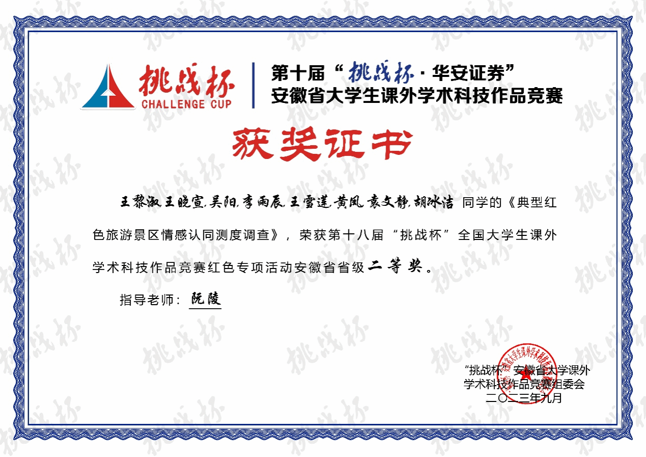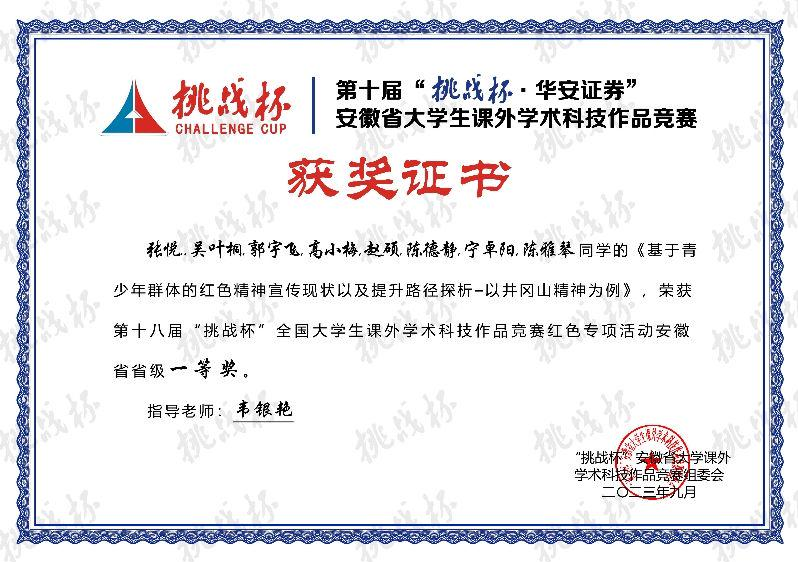 第十届“挑战杯”安徽省老员工课外学术科技作品竞赛红色专项省级一等奖4项,二等奖5项,三等奖2项