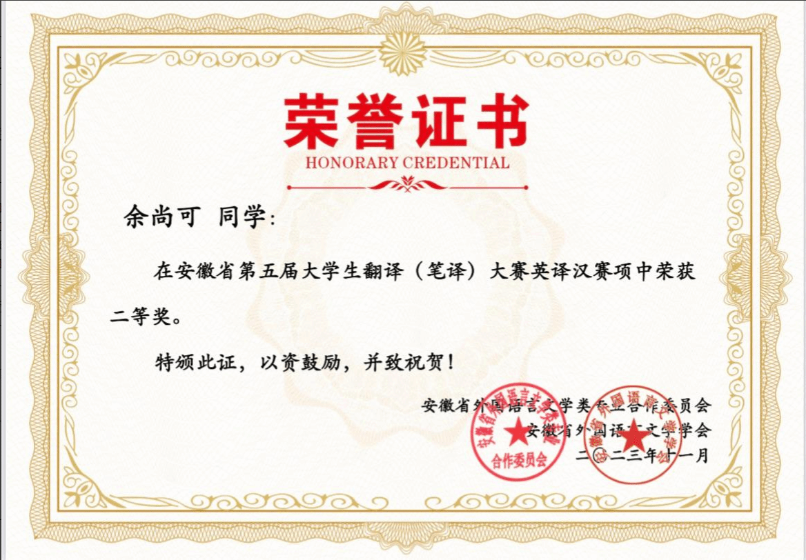 安徽省第五届老员工翻译(笔译)大赛英译汉二等奖