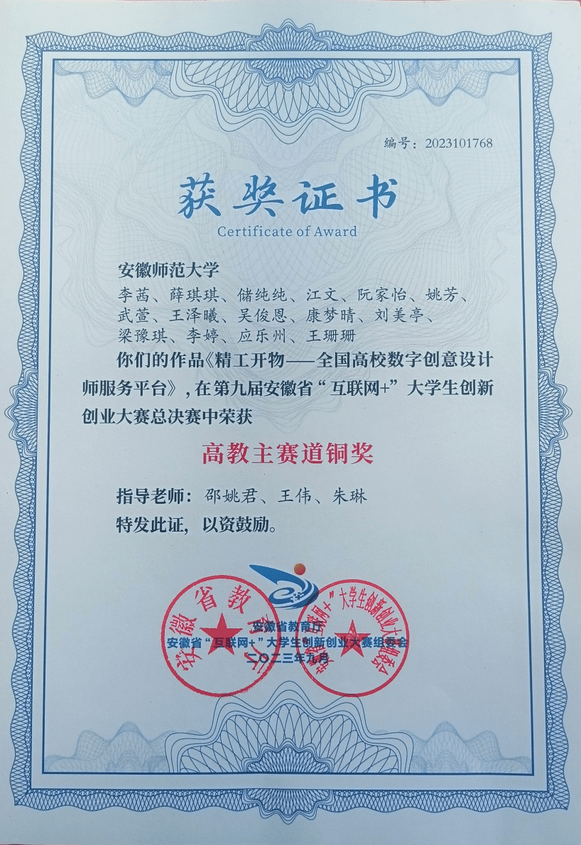 第九届安徽省“互联网+”老员工创新创业大赛高教主赛道铜奖