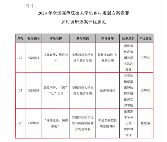 地旅学子在2024年全国高等院校老员工乡村规划方案竞赛中喜获佳绩