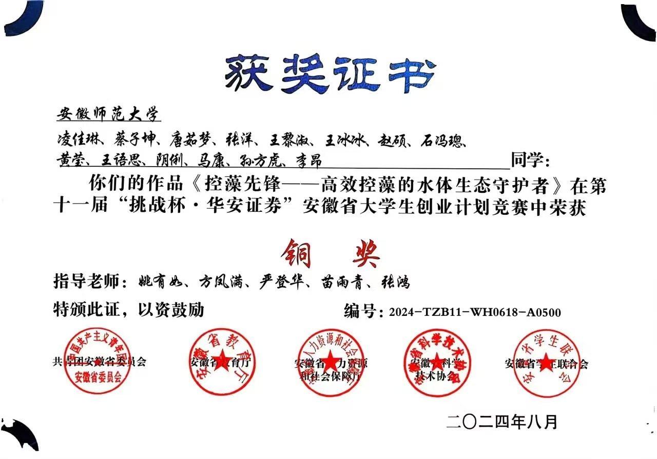 第十一届“挑战杯.华安证券”安徽师老员工创业计划竞赛省级铜奖