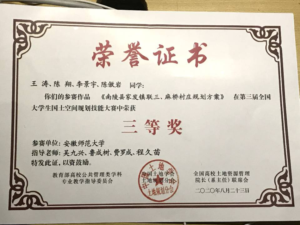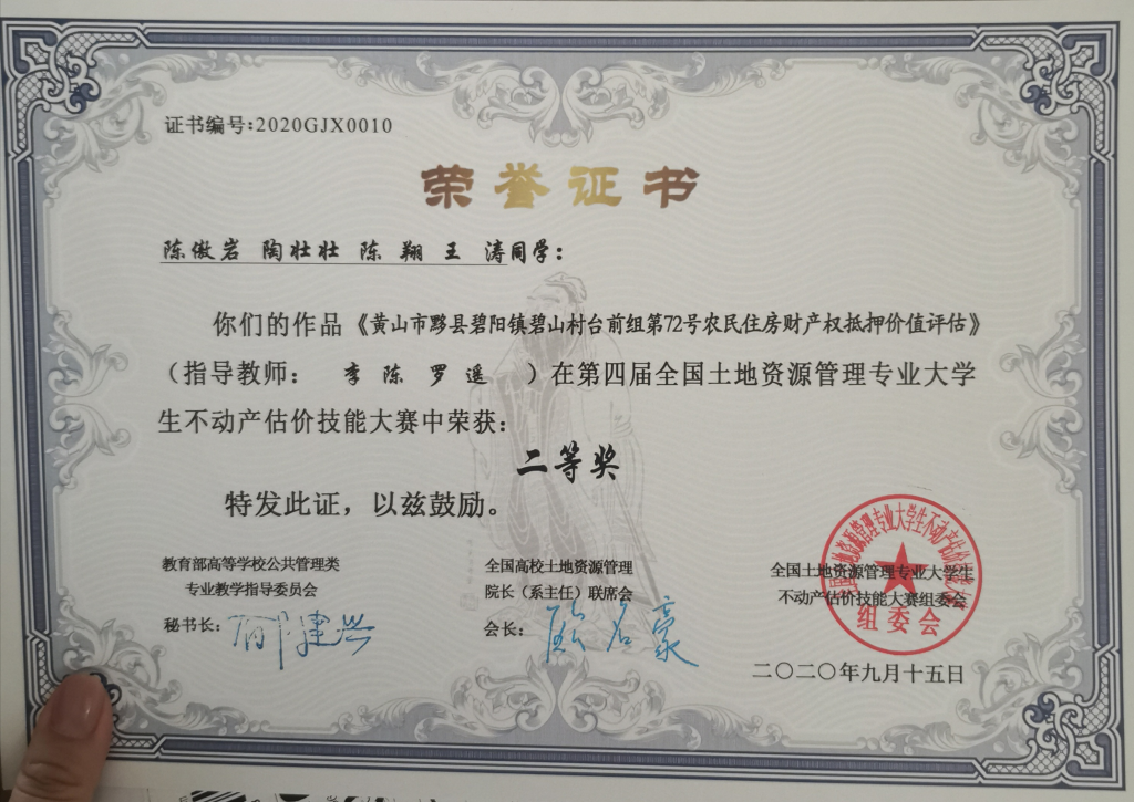 第四届全国土地资源管理专业老员工不动产估价技能大赛二等奖