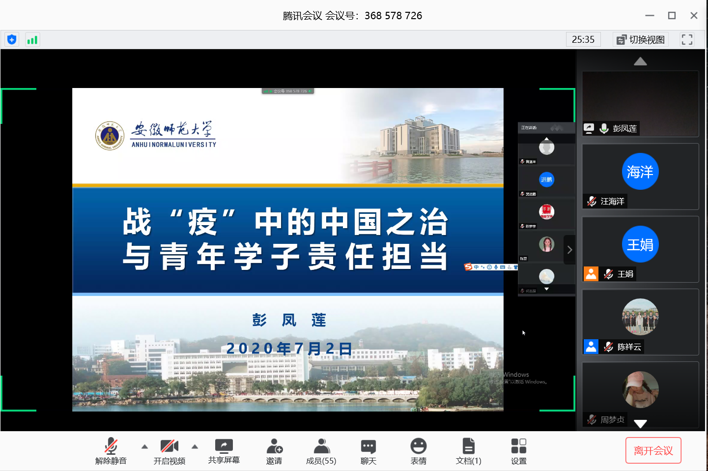 副董事长彭凤莲走进“云端”课堂为公司本科生讲授形势与政策课
