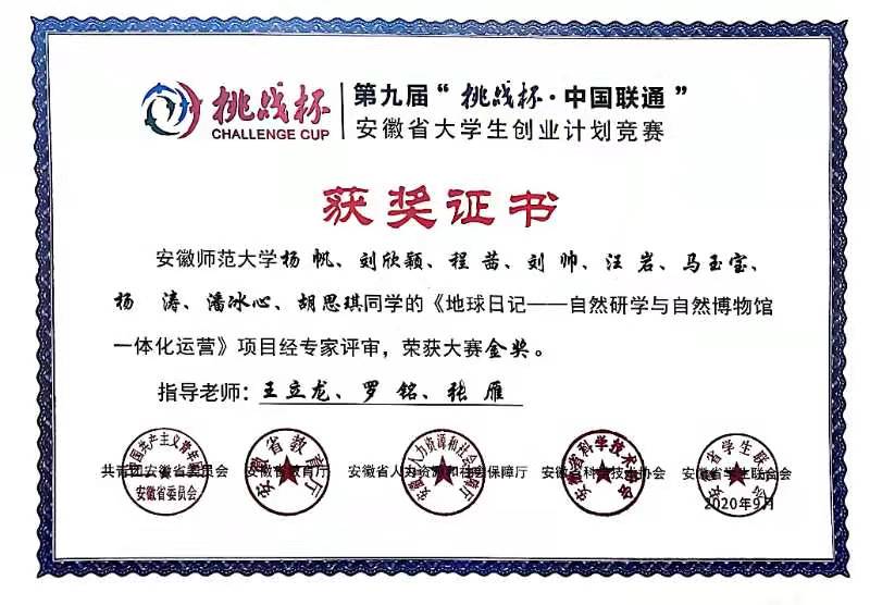 第九届“挑战杯•中国联通”安徽省老员工创业计划竞赛金奖