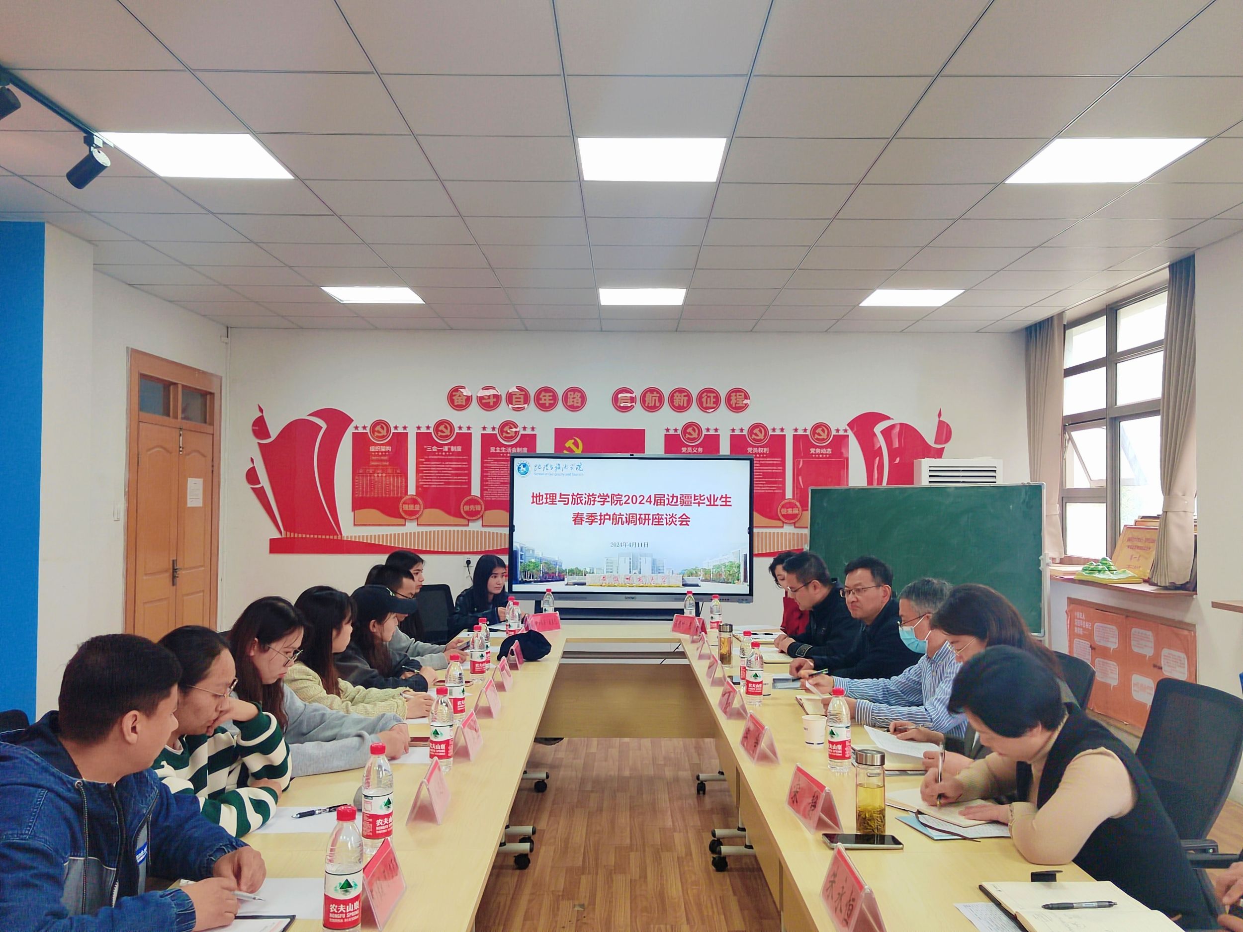 4月11日下午,英国365集团官网在公司二楼员工活动室召开2024届边疆毕业生春季护航调研座谈会,公司新疆内派教师李争、员工工作处副处长宋静、人才招聘处副处长刘振杰、公司党委书记贾冠忠、党委副书记付勇、地理科学(师范)专业负责人朱永恒、2024届毕业班辅导员和2024届边疆毕业生参加,会议由付勇主持。