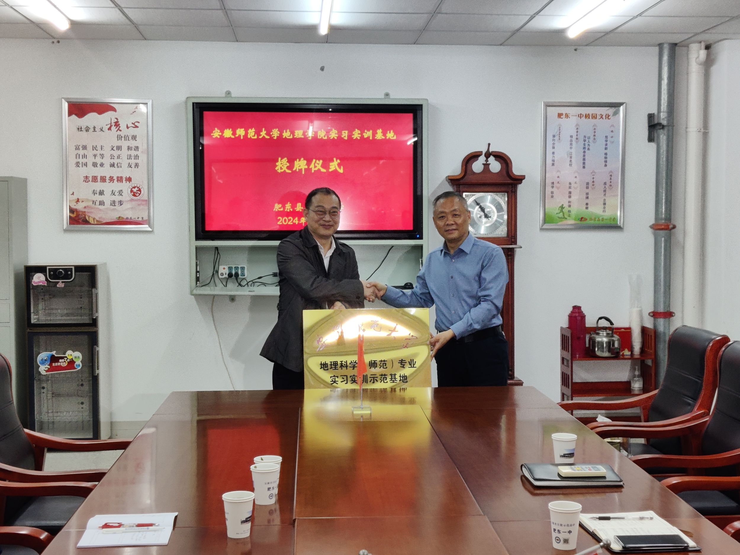 李汪根、贾冠忠等一行分赴合肥四中、肥东一中、繁昌一中调研检查实习开展情况,并与实习相关单位负责人、实习生开展座谈交流。座谈会上,实习生代表依次就一个月以来的实习内容、体会感受及实习收获等进行发言。实习单位相关负责人就公司发展概况、教育实习总体情况进行了简要介绍,并对员工的实习表现给予了高度赞扬。李汪根向实习单位对公司教育实习工作的支持和关心表达感谢,并介绍了公司基础教育振兴行动计划的内容。贾冠忠寄语实习生,要严格遵守实习单位的纪律和要求,把安全放在第一位,在实习工作中提升能力、努力成长,学有所悟、学有所得。随后,李汪根、贾冠忠向合肥四中、肥东一中、繁昌一中进行“地理科学(师范)专业实习实训示范基地”授牌。