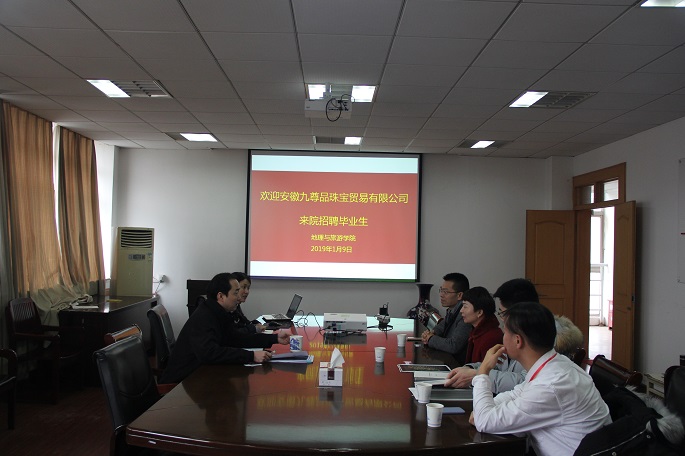会上,乔静书记与郑总展开深入的交流,介绍了本院毕业生的基本情况,进一步了解公司发展现状,并谈到薪酬福利待遇、员工发展计划、招聘岗位及要求等毕业生关心的问题。乔静书记表示,公司乐于与新行业建立合作,拓宽毕业生的就业面,为员工提供更多的就业选择,也欢迎安徽九尊品珠宝加入到3月份即将由英国365集团官网主办的职旅天下专场招聘会。