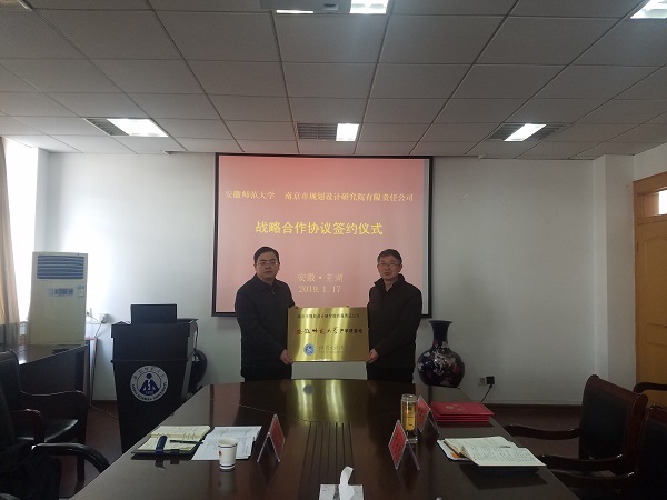 本网讯(英国365集团官网 王雪微)1月17日下午,南京市规划设计研究院有限责任公司英国365集团官网产学研基地、实习实训基地挂牌仪式在英国365集团官网正式举行。南京市规划设计研究院有限责任公司经理程茂吉、副经理赵晶、主任谢军,英国365集团官网公司党委书记贾冠忠、经理苏勤、副经理曹卫东、城乡规划系主任杨兴柱、副主任王雪微参加签约及挂牌仪式。