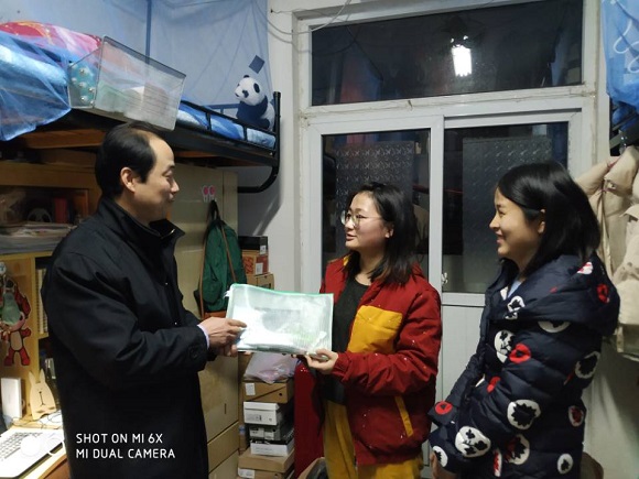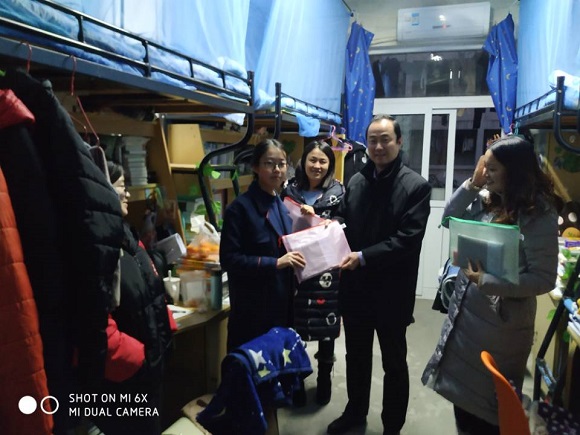 公司为考研学子准备了考试所需的签字笔、尺子等全套考试文具。在走访过程中,乔书记带领辅导员将慰问品发放到一位位考研学子手上。小小礼品袋里装满了公司老师对考研学子的满满关怀。乔书记热心询问同学们的考研复习进度以及所遇到的困难,鼓励大家在最后的几天备考中要坚定自己的梦想,持之以恒,以健康的心态和身体迎接考试,超越自我,实现梦想。