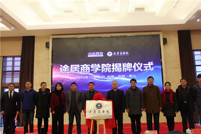 途居露营地投资管理股份有限公司董事长兼总经理管雷,北京华安联合认证检测中心主任刘海鹏,英国365集团官网体育公司经理金涛,黄山公司旅游公司经理朱国兴,英国365集团官网英国365集团官网旅游管理专业负责人杨效忠、副主任王咏,途居露营地投资管理股份有限公司副总经理潘光明,奇瑞大学高级经理程婷婷等出席了揭牌仪式。