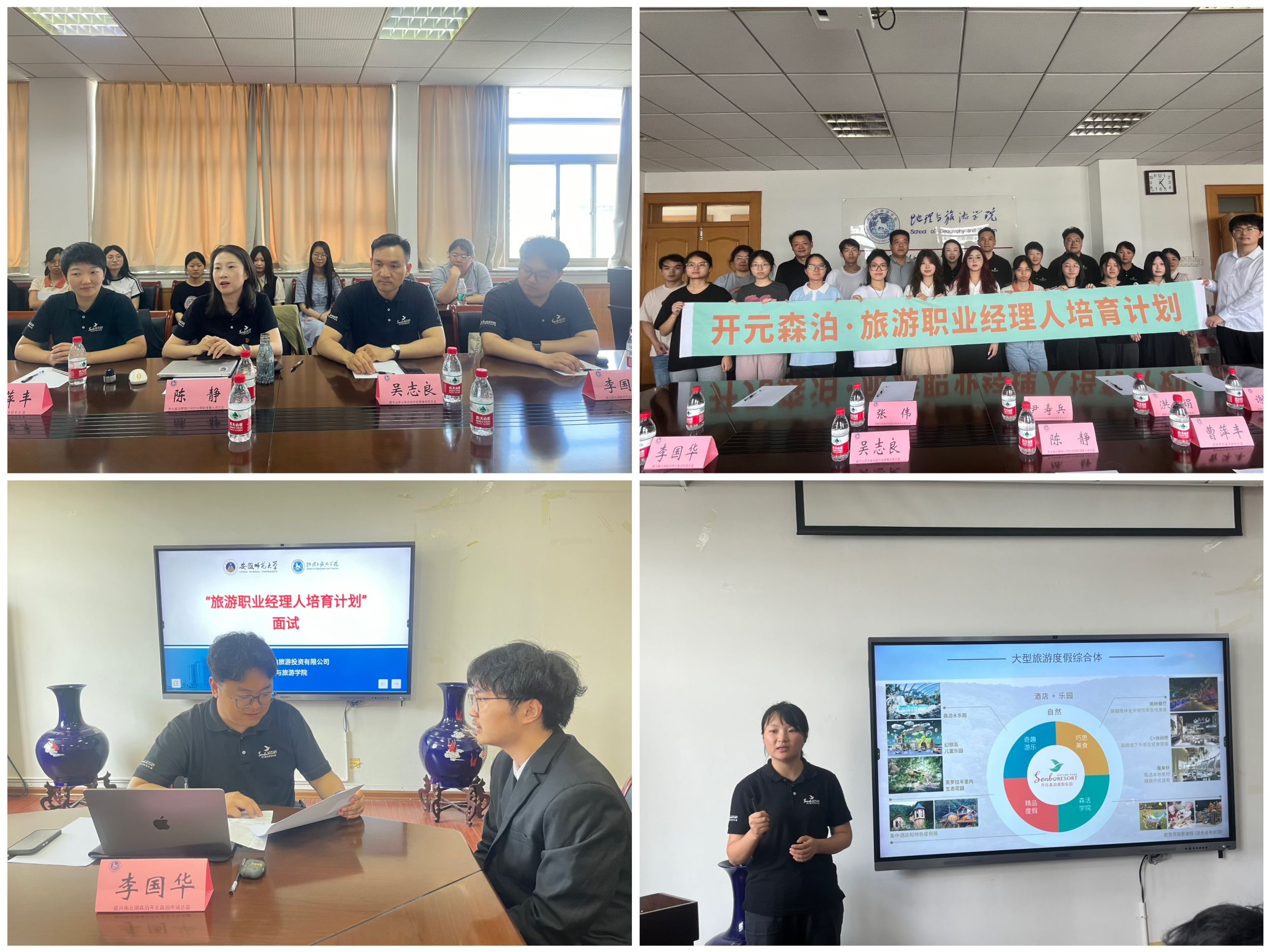 说得千里路,不如行一步。旅游管理专业统一认识后,迅速落实到人,立即着手开展工作。6月20日下午,联合开元森泊管理公司实施第二届“旅游职业经理人培育计划”人才招募面试。经过筛选,最终11位员工加入“旅游职业经理人培育计划”,入选的员工将在企业高管和专业老师组成的团队指导下完成实践课题,表现优秀者将优先进入森泊“新森代”通道,以管培生身份正式入职。