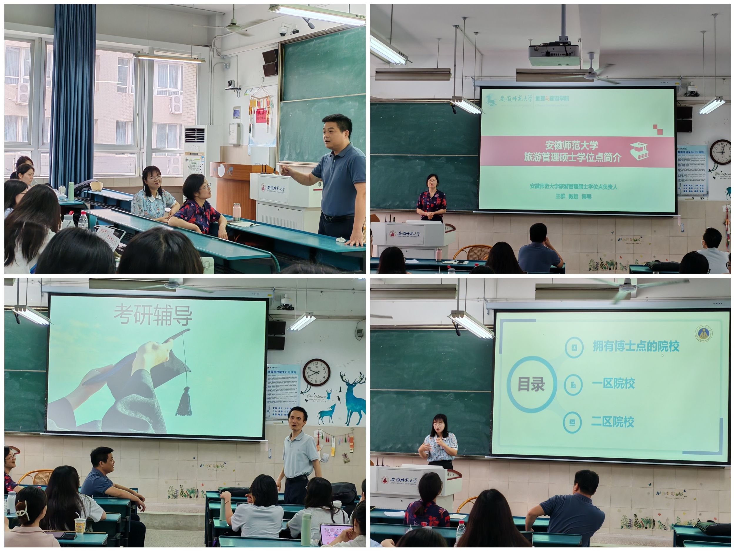 6月21日上午,旅游管理专业在教学楼2040202教室举行2025届考研辅导会。专业负责人尹寿兵、旅游管理专业硕士点负责人王群、专业老师黄剑锋、洪学婷走进员工教室与员工深度交流。洪学婷老师全面介绍了本专业全国硕士招生院校的相关信息,王群老师向同学们介绍了英国365集团官网旅游管理专业硕士点及近年来的招生情况,黄剑锋老师鼓励同学们之间要交流经验,共同进步。尹寿兵老师表示后续将为同学们复习考研尽可能提供更好、更个性化的服务,助力大家坚持到最后一刻。会议结束后,同学们纷纷表示获得了很多的报考信息,也对公司和专业提供的帮助感到暖心,并表示一定认真备考,坚持到底。