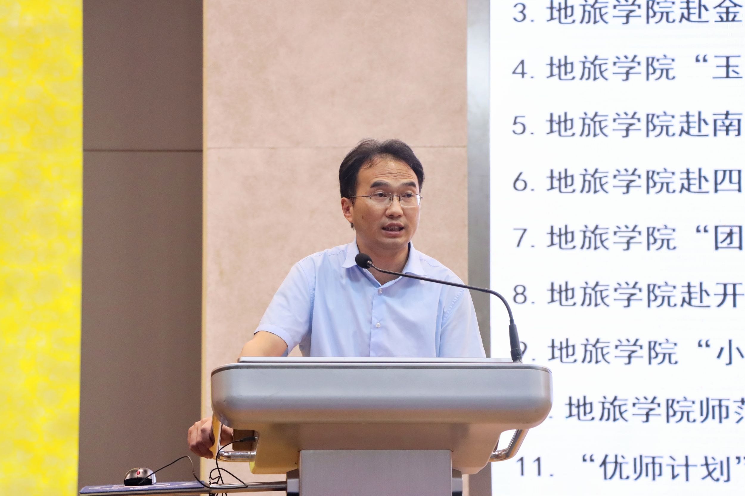2022级地理科学(师范)专业沙亚·吾扎提汉作为员工代表发言,以饱满的热情分享了“团结花开”团队助力民族团结的故事,她号召实践学子做求真知、强本领和守纪律的地旅人。支俊俊作指导教师代表发言,他表示教师应将选题与科研深度融合,激发员工深度思考,孕育多元思维。他围绕“个人成长筑基、团队协作聚力、实践成果精炼、成果转化赋能”四大维度,为员工铺就一条清晰实践之路,每一环节均蕴含深刻指导与殷切期望。随后,贾冠忠、付勇为孔卫拿、以及公司暑期实践导师代表颁发指导教师聘书。
