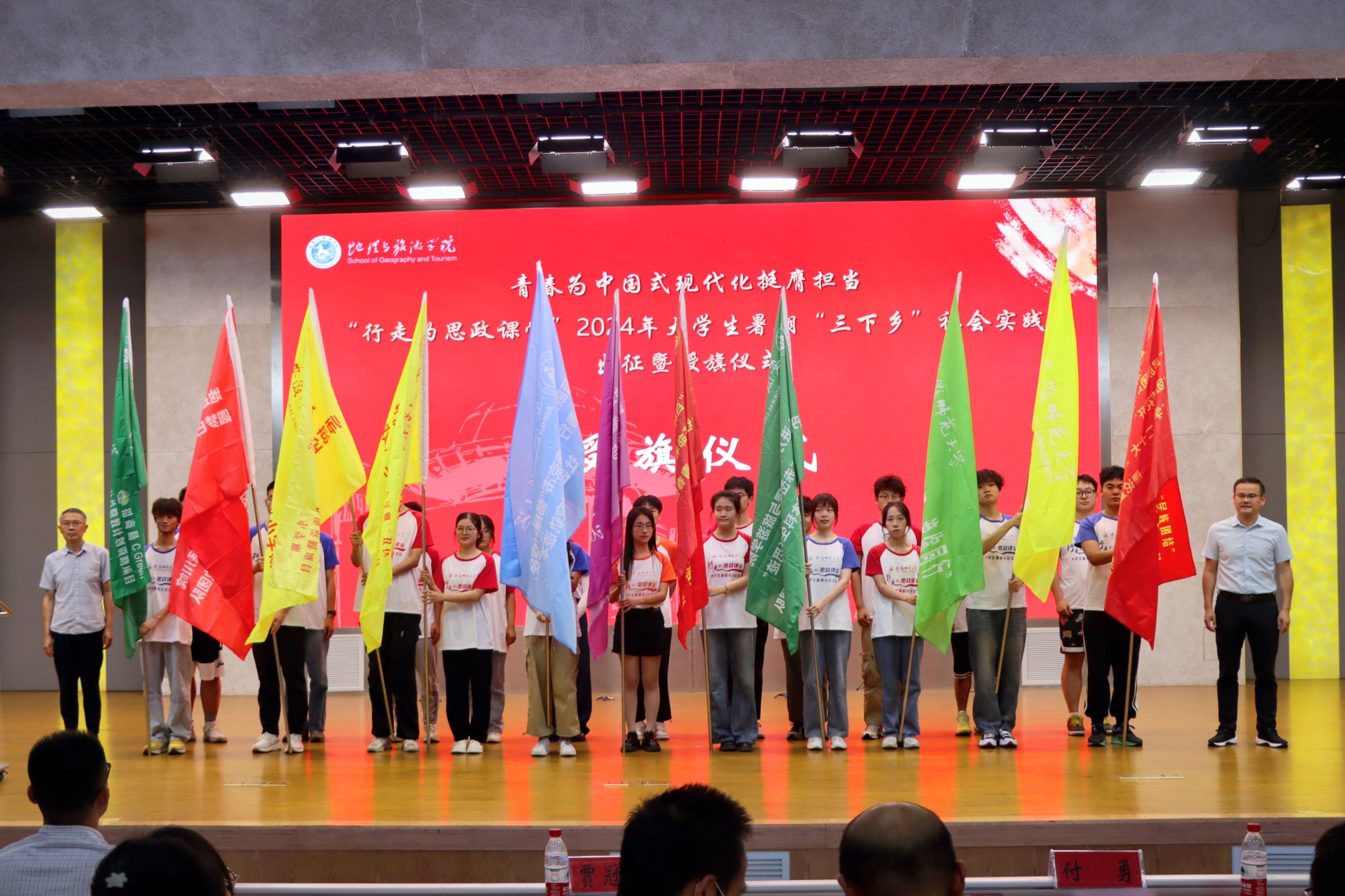 本网讯(英国365集团官网 余玉银)7月7日,英国365集团官网“行走的思政课堂”2024年老员工暑期“三下乡”社会实践出征授旗仪式于理科大楼成功举办。马克思主义公司思政指导教师孔卫拿,公司党委书记贾冠忠,副书记付勇,副经理汪文文,副经理杨兴柱,暑期实践指导教师代表、专兼职辅导员和全体暑期社会实践队员到场参加仪式。仪式由2021级地理科学(拔尖人才班)专业蔡子坤和2021级地理信息科学专业姚兰主持。