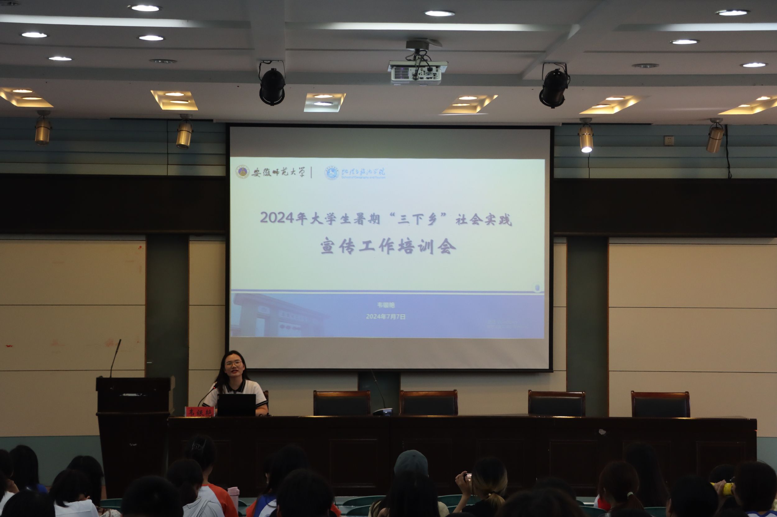 新闻宣传培训会上,韦银艳从新闻稿撰写、微信推文发布、视频素材整理要点等方面详细向队长和宣传员们进行了培训,并提供大量新闻稿素材供同学们学习参考,鼓励同学们积极谋划、扎实开展实践,通过优质的稿件将实践过程宣传好,展现师大实践学子的良好风貌。