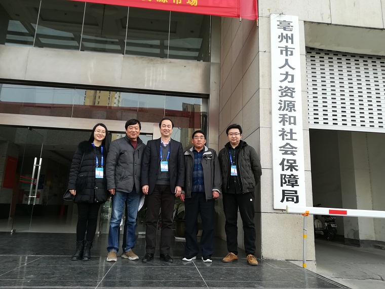 本网讯(彭媛媛、钱程)为进一步开拓就业市场,提高就业质量,为毕业生提供更多的就业机会,2018年12月4日,公司党委副书记乔静带领辅导员钱程、彭媛媛赴亳州市人力资源和社会保障局开展“校政企”合作洽谈。亳州市就业局副局长李万夫、市人社局就业科科长耿汉杰、市就业局市场科科长刘永等对公司的拜访表示热烈的欢迎。