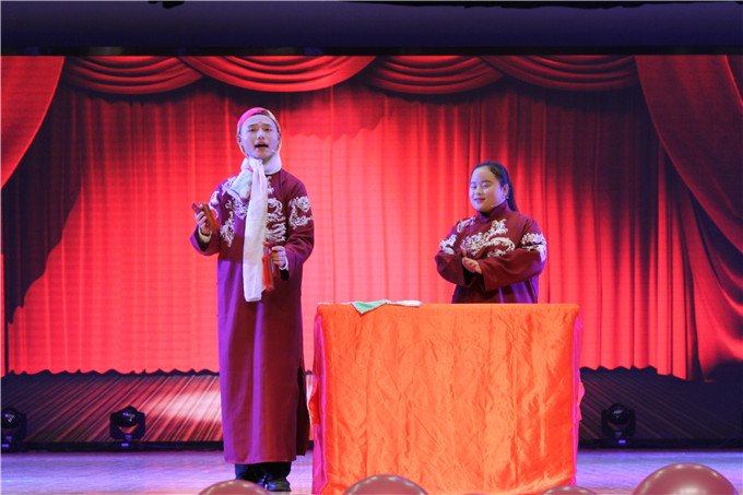 时代律动,中国节拍,青年矢志,初心不改。歌伴舞《中国节拍·震动世界》中,来自公司各专业的青年学子步履如飞,四面八方汇聚舞台,曼妙舞姿点缀的舞台中央,侯永康老师与丁寅同学此唱彼和,响遏行云,恰显青年风华正茂,高歌震动世界的“中国节拍”;歌曲联唱《映山红》《当你老了》《最美的期待》《明天会更好》,副经理曹卫东携陈瑞菲、徐飞扬、孙雯杰、汪岩等同学唱响时代声音,师生用悠扬的歌声抒发对祖国发展的自豪与骄傲,表达对新时代的赞美与热爱;相声《手机狂想曲》从同学们的真实生活出发,语言诙谐,笑侃“低头族”现象,谈笑间发人深思;爵士舞《Red Jazz》旋律动感,舞蹈活力四射,张扬青春,引爆全场。