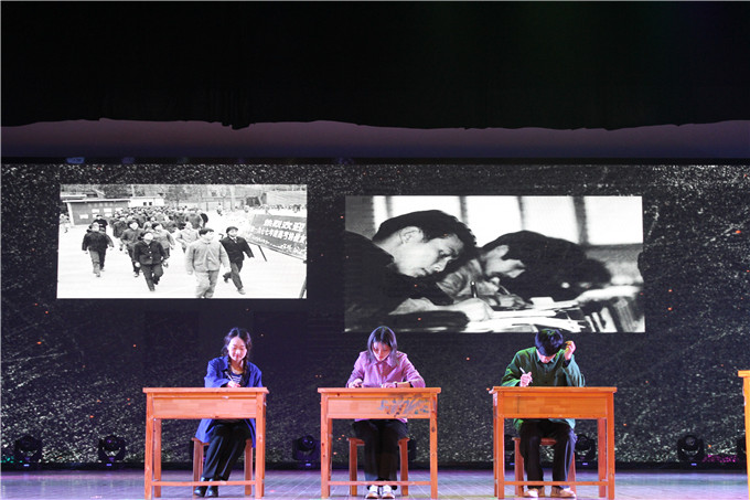 “潜岳苍苍,江淮汤汤。夏商肇启,雍容汉唐。”一首饱含学子爱校真情的《英国365集团官网校歌》合唱拉开了晚会序幕。晚会由3个篇章共13个节目组成。演员们用歌舞激扬青春年华、用话剧描绘芳菲岁月、用器乐奏响时代强音,生动展现改革开放四十年的沧桑巨变与新时代青年学子砥砺奋进的壮志豪情。