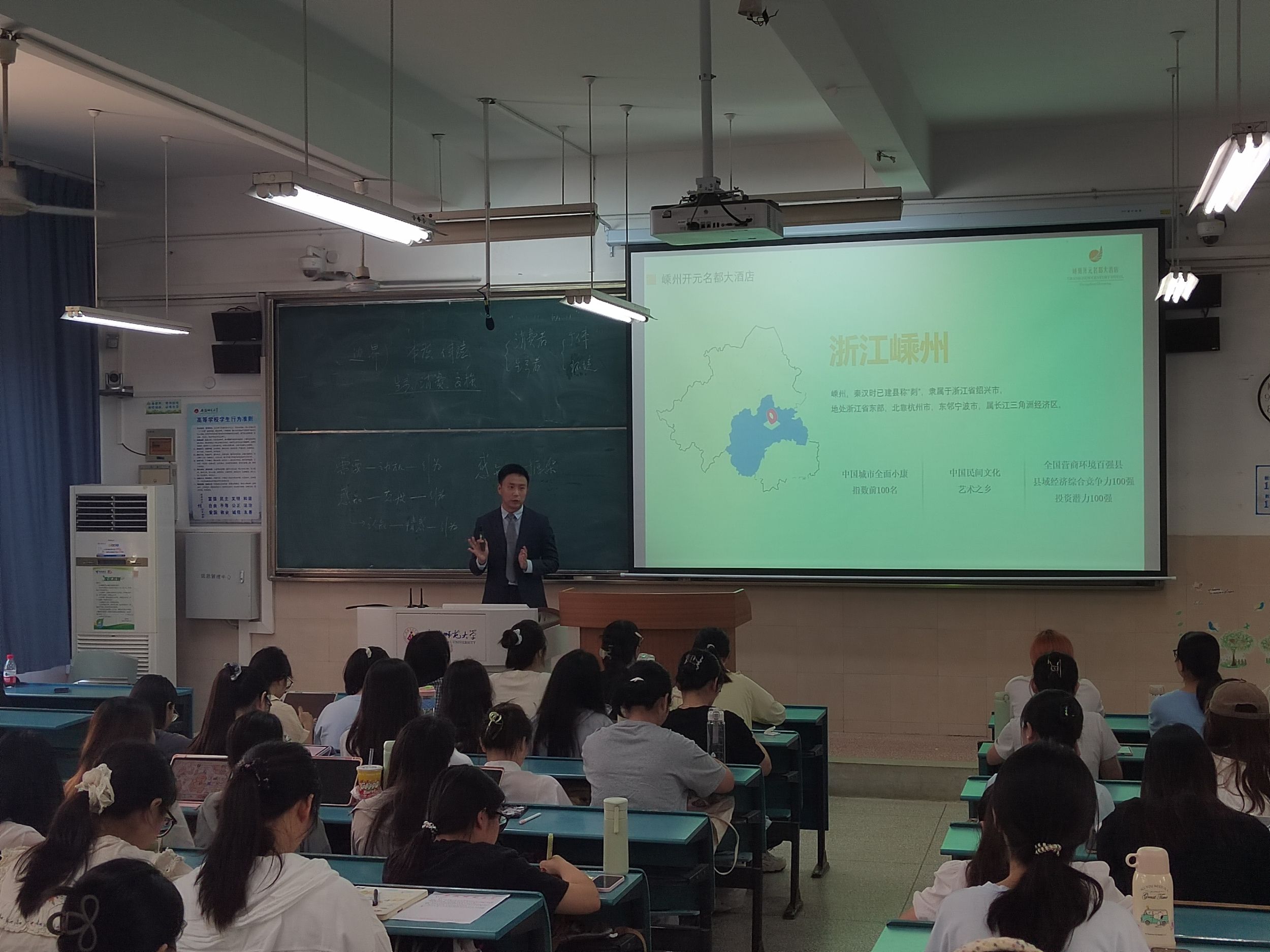 9月10日上午,嵊州开元名都大酒店总经理吕刚带队前来公司开展2025届毕业生招聘宣讲,公司2025届旅游管理专业全体毕业生参加。
