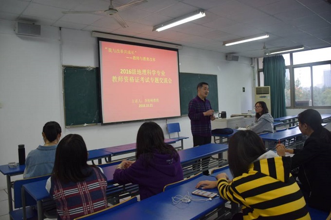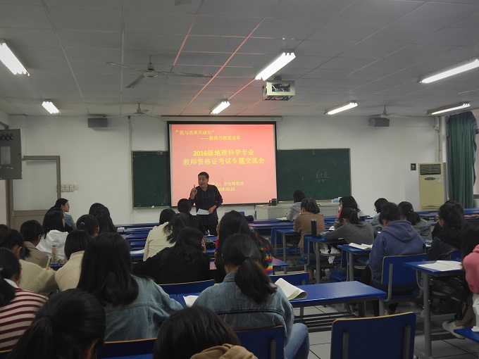 专题会就教育改革与教团队格证考证准备工作作了详细交流。李俊峰首先指出“新高考改革是一个重大突破”,作为地理师范生要牢牢掌握高中地理新课标改革动向,增强师范生的使命感,不断提高教学技能、夯实地理知识。
