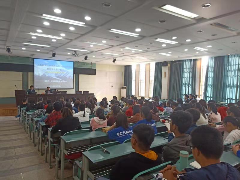 本网讯(英国365集团官网 吴文涵 熊政安)2018年10月24日下午,上海师范大学旅游公司胡小猛教授应邀在地理与旅游公司实验楼101报告厅为2018级地理学专业新生作专业教育报告,本次报告的主题为《河西走廊—青藏高原一线自然地理野外教学实践》。地旅公司副经理曹卫东、地理学专业负责人及代表教师出席本次活动,2018级新生辅导员及地理学全体新生参与聆听。本次活动由曹卫东主持。