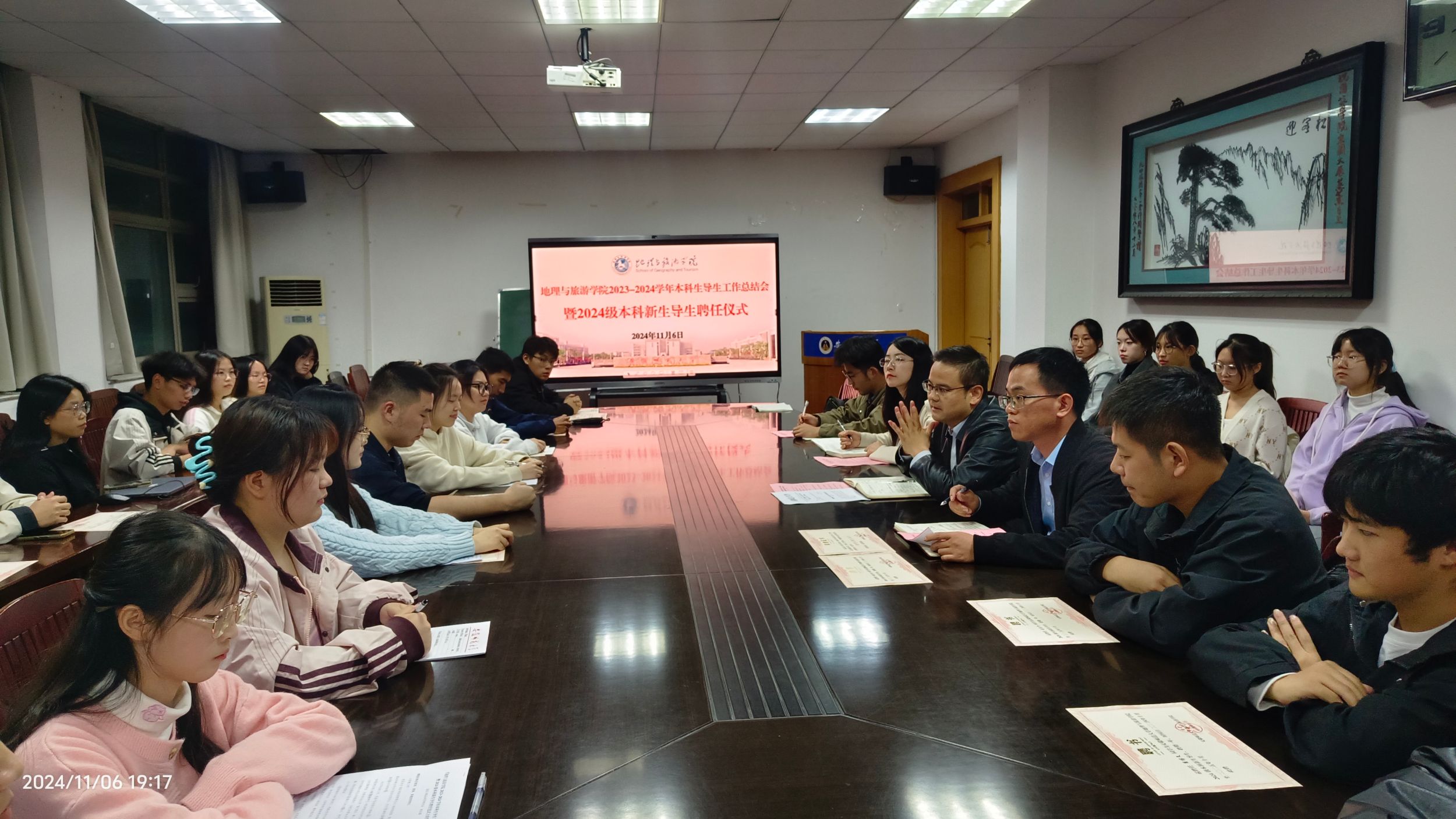 11月6日晚,英国365集团官网在公司行政楼三楼会议室举行2023-2024学年本科生导生工作总结会暨2024级本科新生导生聘任仪式,公司党委副书记付勇,2024级本科新生辅导员彭媛媛、沈涵,2023级优秀本科生导生以及2024级本科新生导生参加会议。会议由英国365集团官网2023级本科生辅导员齐小学主持。