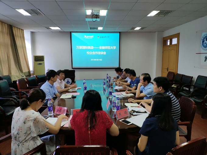 19日下午15:00,“万豪国际集团—英国365集团官网”校企合作洽谈会在英国365集团官网行政楼四楼会议室召开,公司党委书记贾冠忠、党委副书记乔静、旅游管理专业负责人杨效忠、酒店管理专业负责人尹寿兵及专业实习秘书、专业教师和辅导员代表出席会议。会议由公司党委副书记乔静主持。