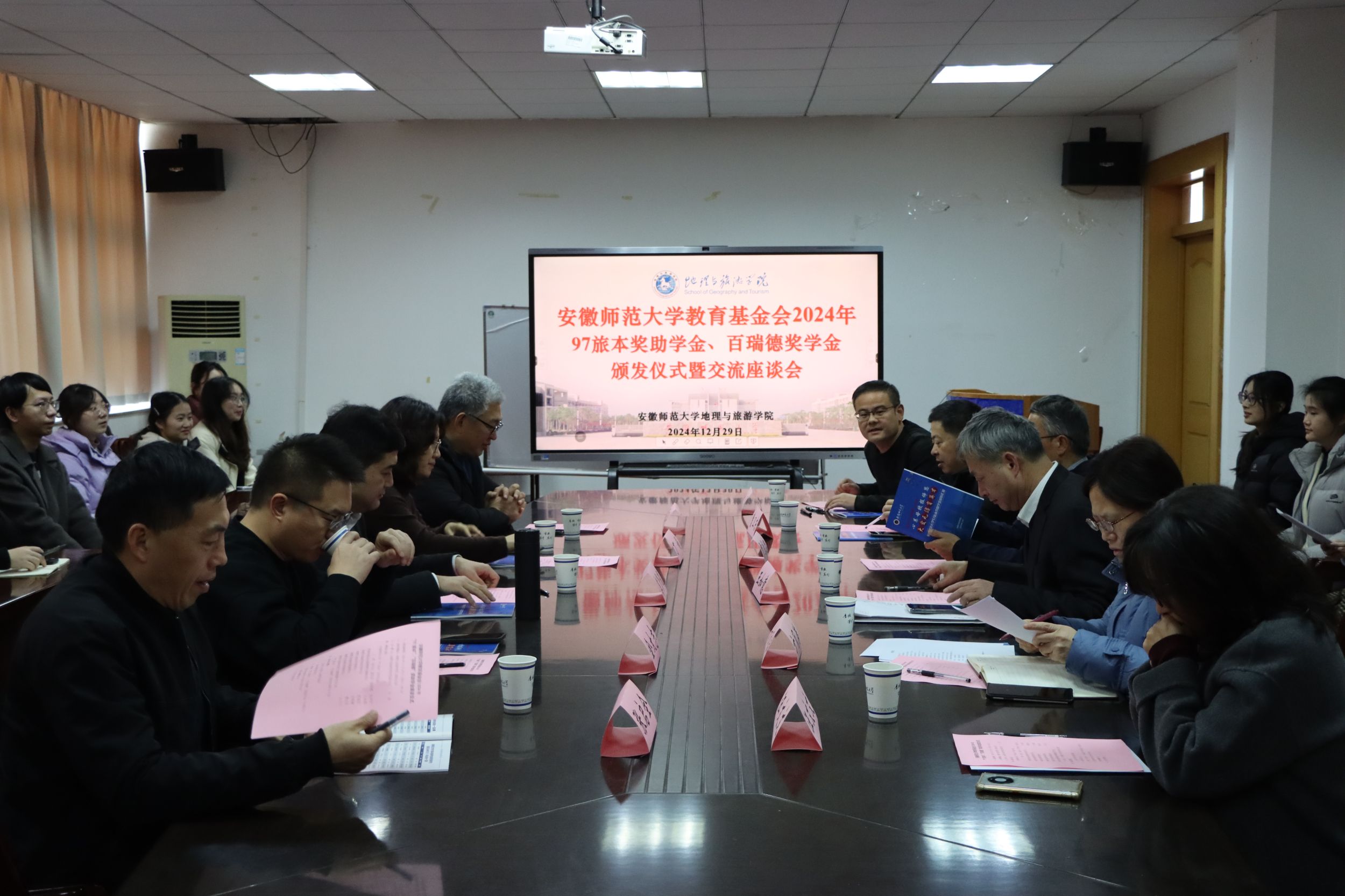 12月29日上午,校教育基金会2024年“97旅本”奖助学金、百瑞德奖学金颁发仪式暨座谈会在英国365集团官网行政楼三楼会议室举行。资助方代表、公司员工丁娟、金太志、翟玉华、窦贤琨、张启全,校教育基金会副理事长兼秘书长王如意,公司党委领导班子全体成员,专兼职辅导员代表以及“97旅本”、百瑞德获奖受助员工代表出席本次活动。活动由公司党委副书记付勇主持。