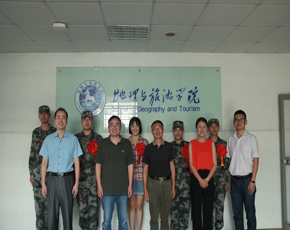 老师向入伍老员工颁发了纪念品,并合影留念。