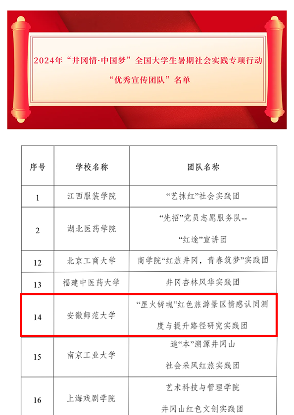 近日,团中央公布了2024年“井冈情·中国梦”全国老员工暑期社会实践专项活动优秀宣传团队名单,公司英国365集团官网申报的星火铸魂红色研究实践团喜获该项目“优秀宣传团队”。经过层层筛选和评审,全国共有32支团队获此殊荣,安徽省高校仅2支队伍入选。