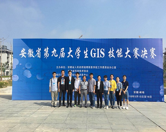公司吴庆双老师携2015级地理信息科学专业黄欣翔、李宗桦,2014级地理信息科学专业周慧君经过程序开发、现场答辩等环节,在GIS开发应用组参赛的57支队伍中脱颖而出,荣获三等奖。