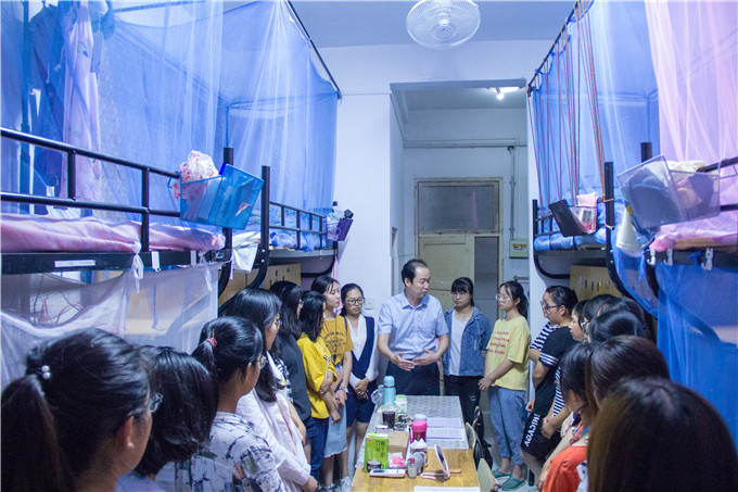 乔静与辅导员吴辉、陈祥云等2018级新生辅导员来到各新生寝室,亲切地询问他们的家乡,并送来了中秋问候。乔静说,同学们不远百里,千里,甚至如新疆学子的万里,来到师大英国365集团官网学习,是对公司办学的认可,也是正确的选择,并代表公司欢迎大家的到来。