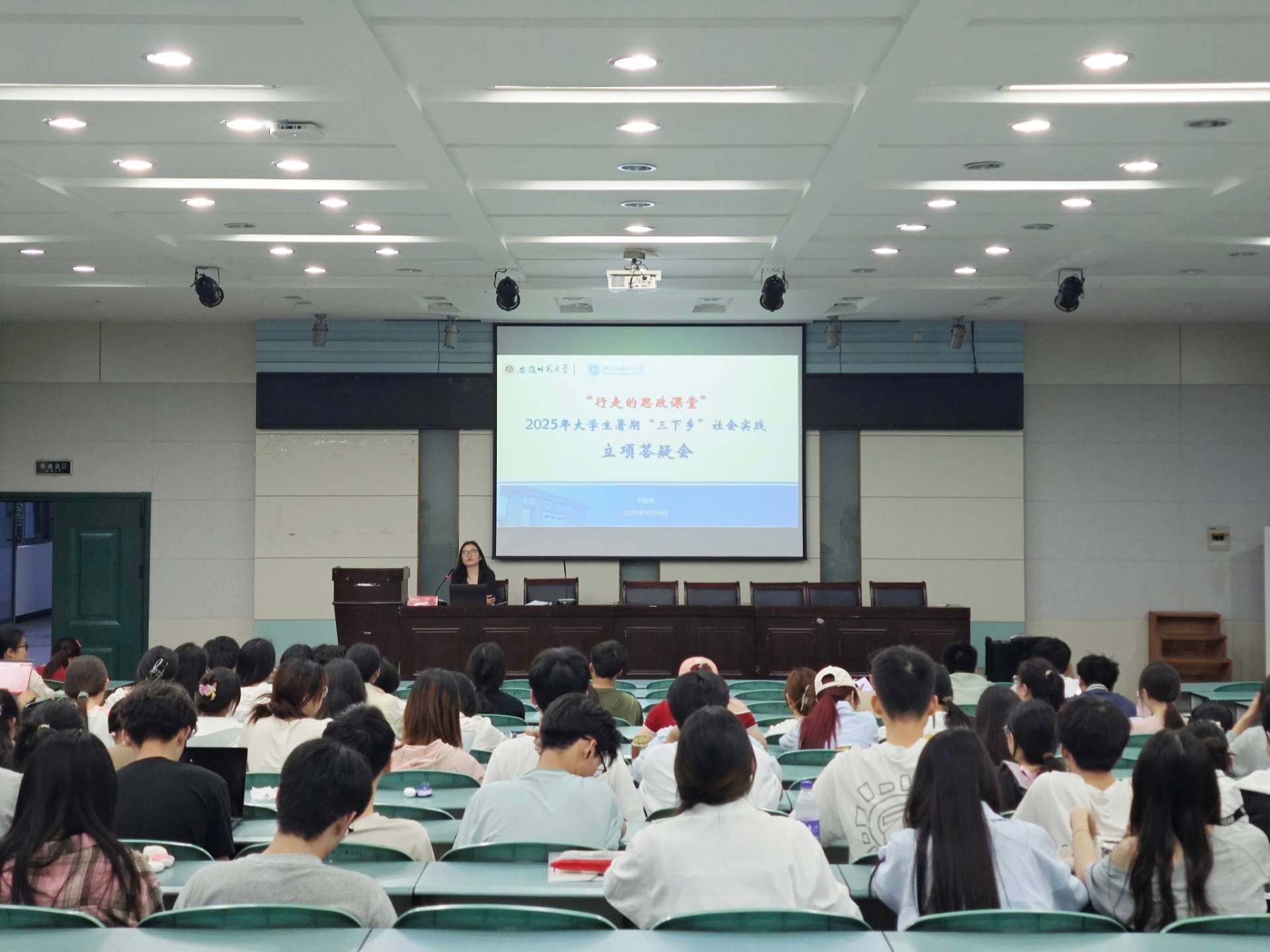 为落实老员工护航行动计划,深化“行走的思政课堂”内涵,地理与旅游公司于2025年5月16日下午在公司实验楼101报告厅举行2025年暑期社会实践团队立项和答疑会。院团委书记韦银艳、各年级团支书、2023级全体班委及有意向参与的同学参加本次会议。本次会议旨在解答团队成员在立项过程中遇到的问题,确保暑假社会实践活动的顺利开展。