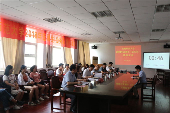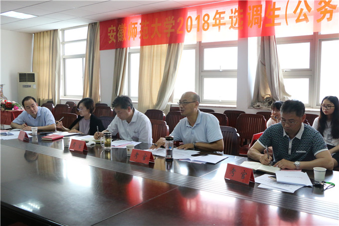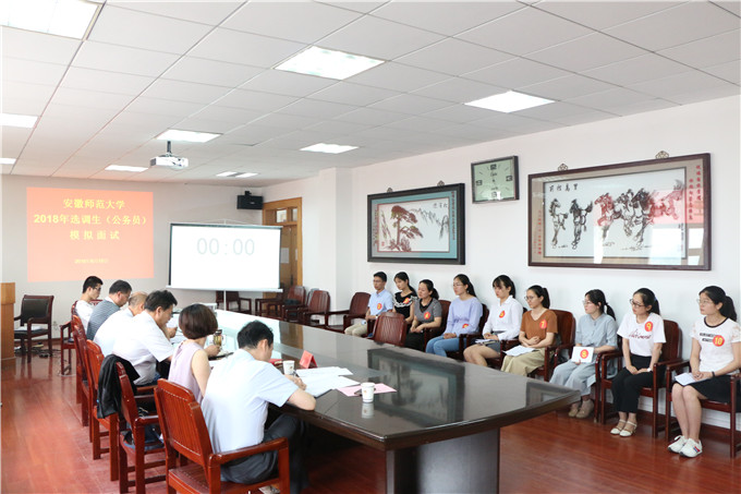 本网讯(英国365集团官网 赵将)为进一步提升毕业生的就业技能,提升公考面试环节的竞争力。6月15日,由安徽省干部培训高校基地(英国365集团官网)、校党委组织部、人才招聘处主办,地旅公司承办的2018年选调生及公务员模拟面试在地旅公司行政楼三楼会议室举行。公司党委统战部部长王如意担任模拟面试主考官,公司党委组织部正处级组织员胡培亮、校团委书记梁燕、校研究生院副经理步献新等应邀担任模拟面试考官,来自新传公司、数统公司、外国语公司、英国365集团官网以及体育公司等10位选调生及公务员笔试入围员工参加模拟面试,10余位备战2019年选调生及公务员考试的同学现场观摩学习。模拟面试由公司党委副书记乔静主持。